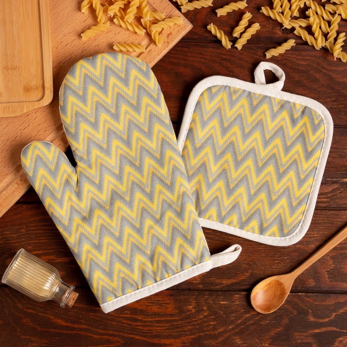 Кухонный набор (2 предмета) Доляна «Зигзаги», прихватка 17х17 см, варежка 26х16 см, 100% п/э