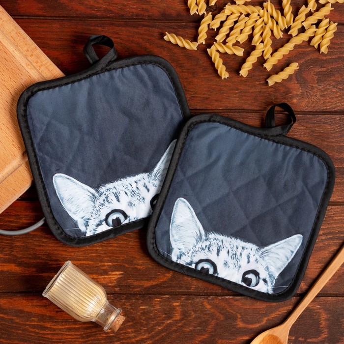 Кухонный набор (2 предмета) Этель LoveLife «Кошечка», прихватка 17х17 см - 2 шт, 100% п/э
