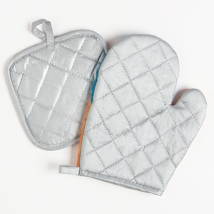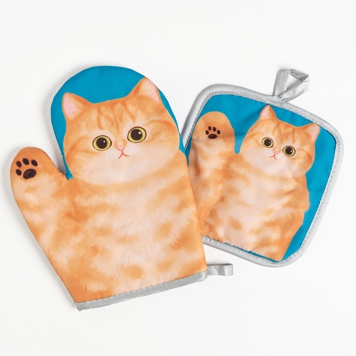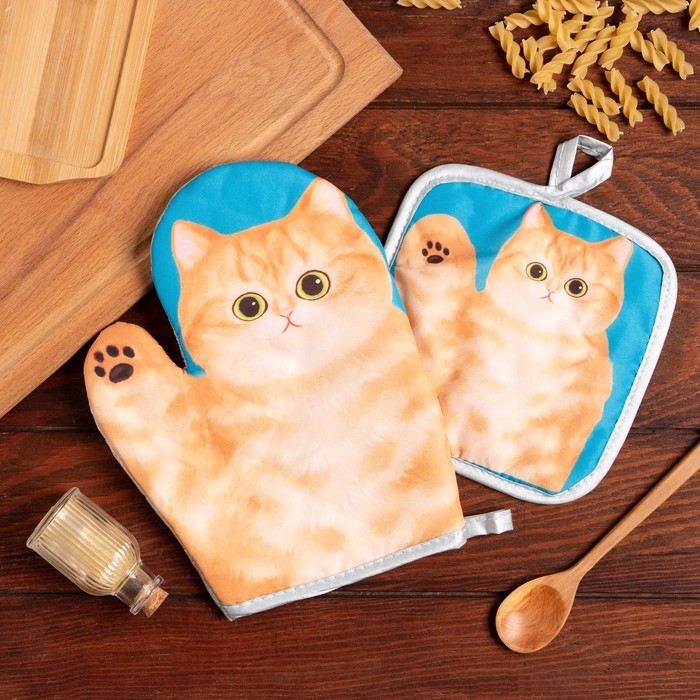 Кухонный набор 2 прихватки Доляна Котики «Мурка» , прихватка 17х17 см, варежка 24х18 см, 100% п/э