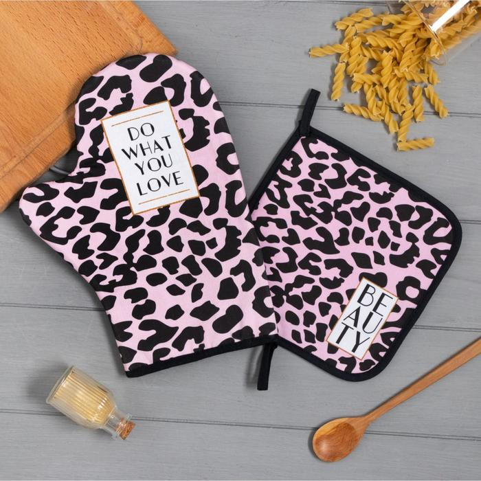 Кухонный набор Этель "Do what you love": варежка-прихватка 20х28 см, прихватка 19х19 см, 100% хлопок