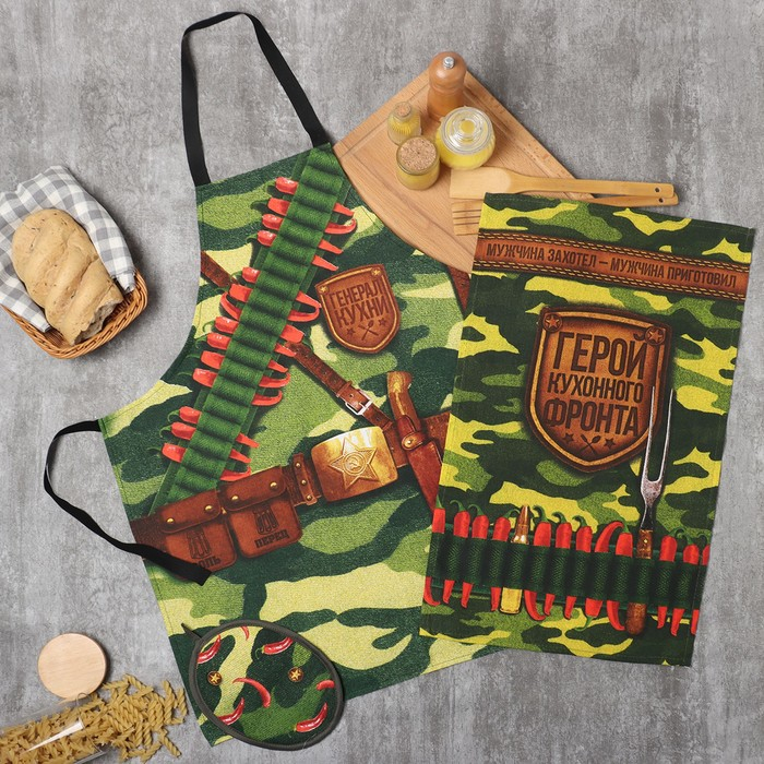 Кухонный набор «Генерал кухни», фартук 60х70 см, прихватка 20х20 см, полотенце 35х60 см