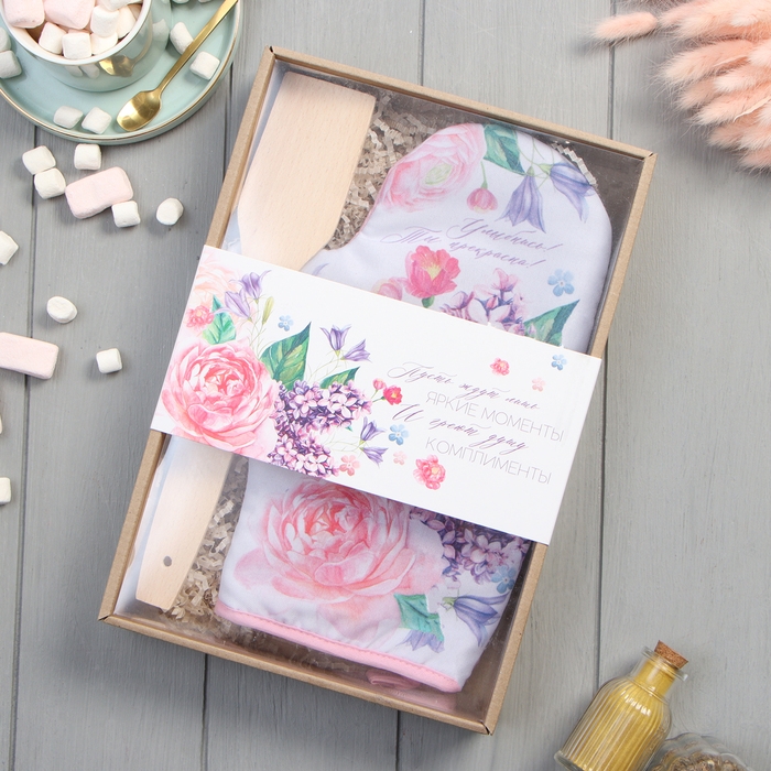 Кухонный набор «Улыбнись», варежка-прихватка 20х28 см, лопатка деревянная