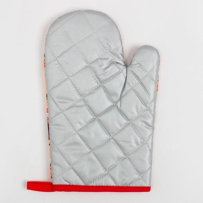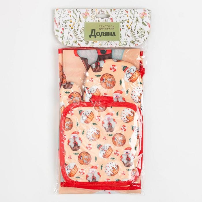 Кухонный новогодний набор Доляна Christmas прихватка 17*17см, варежка 26*16 см, фартук 60*80 см,100% п/э