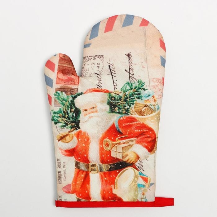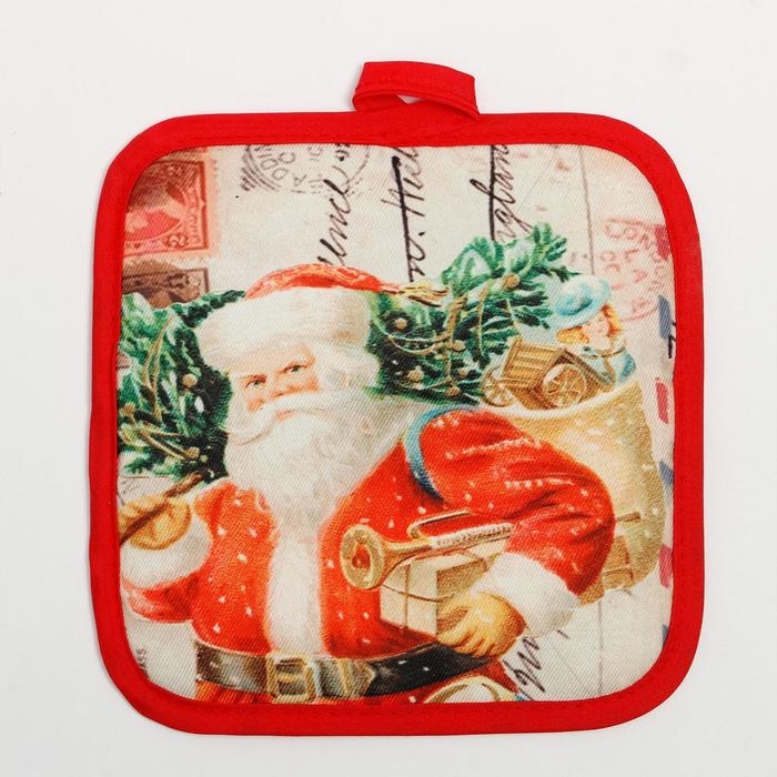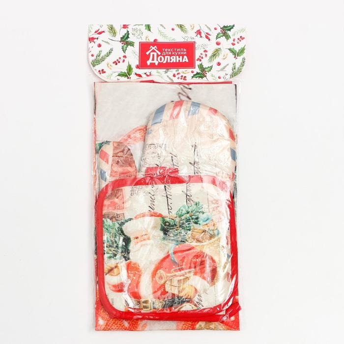 Кухонный новогодний набор Доляна"Новый Год", фартук 70х80 см, прихватка17х17см,варежка-прихватка 26х16см