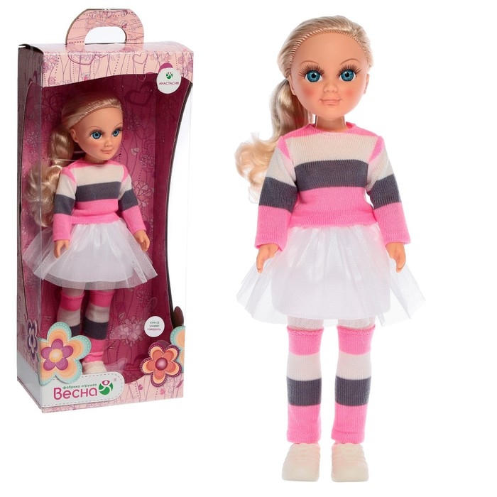 Кукла Анастасия в современом образе с волнистыми волосами. Её модный стиль придётся по душе детям. Она дополнит игровой процесс, станет подругой и незаменимой игрушкой для ребёнка.