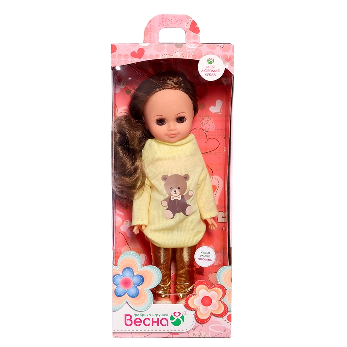 - При нажатии на звуковое устройство, встроенное в спинку, кукла произносит фразы. Список озвученных фраз может варьироваться.
