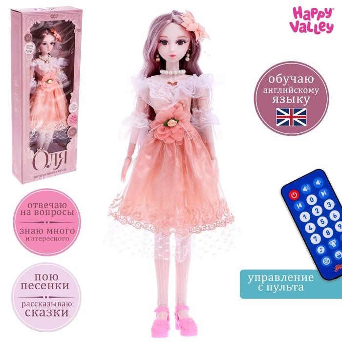 Кукла интерактивная шарнирная «Оля» в платье, с пультом