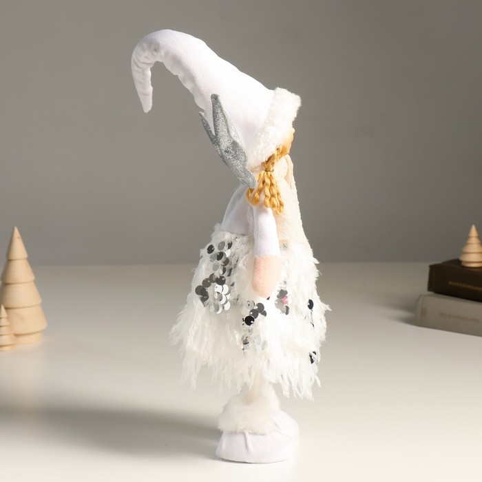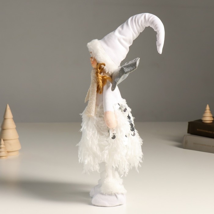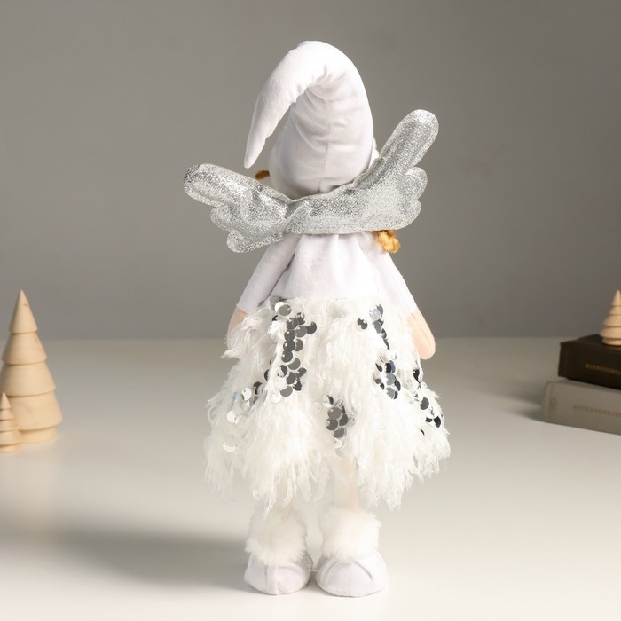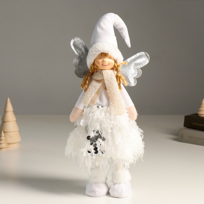 Кукла интерьерная "Ангелочек в белом с пайетками, серебристые крылья" 40 см