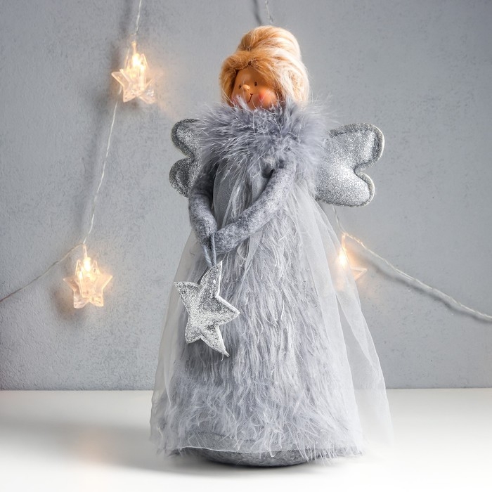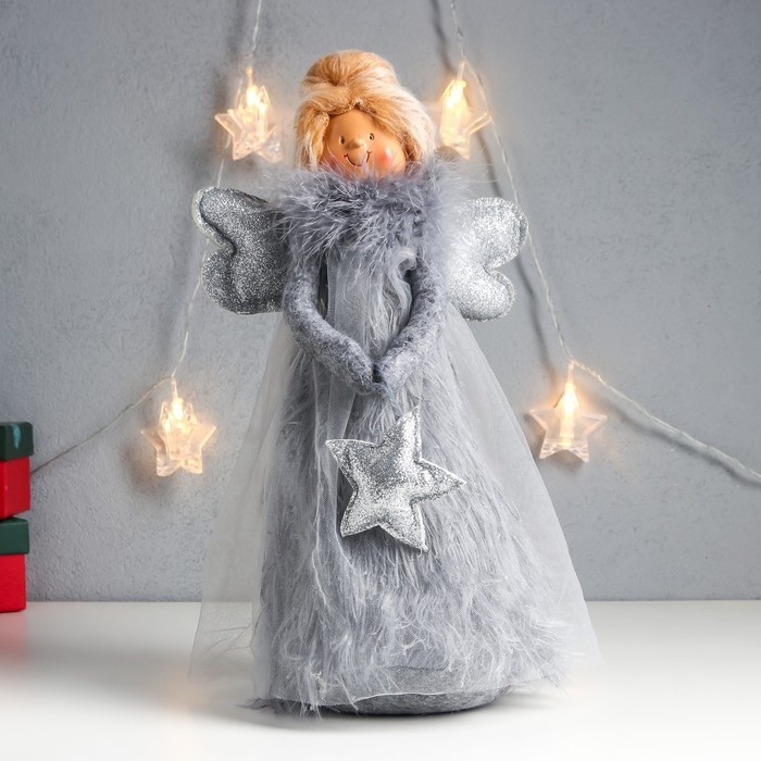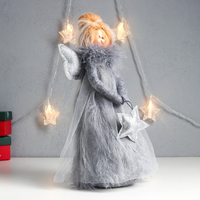 Кукла интерьерная "Ангелочек в сером платье со звёздочкой" пух 37,5х11,5х18 см
