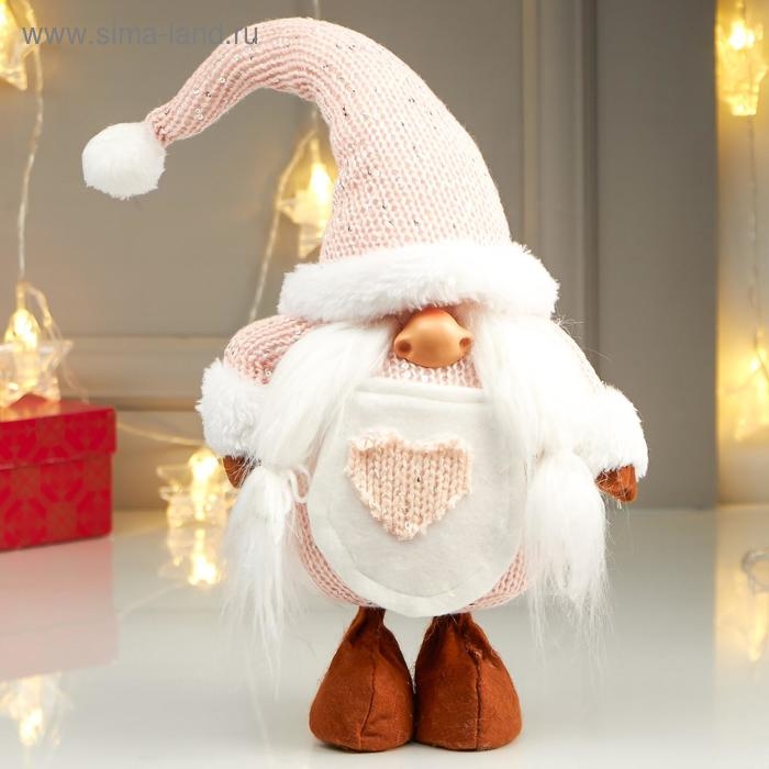 Кукла интерьерная "Бабусечка в розовом колпаке, с сердечком на переднике" 49х14х22 см