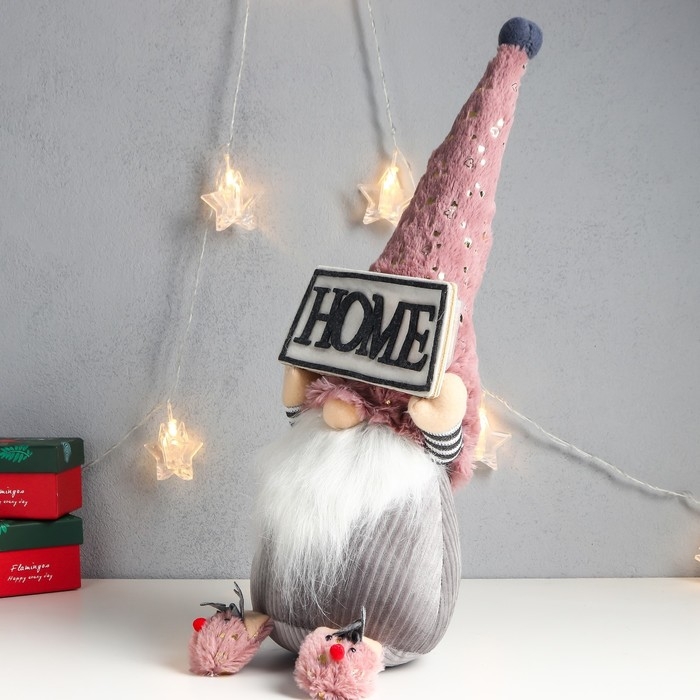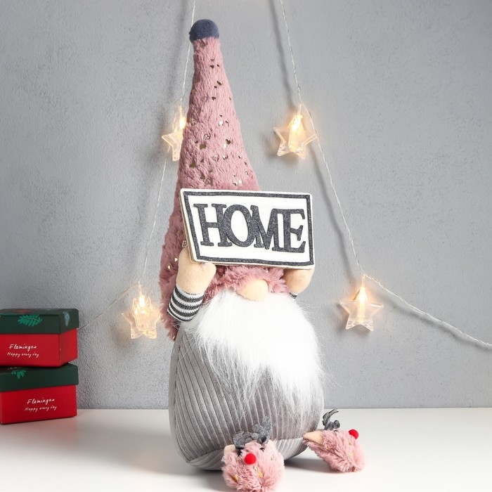 Кукла интерьерная "Дед Мороз с табличкой - HOME" 47х17х15 см