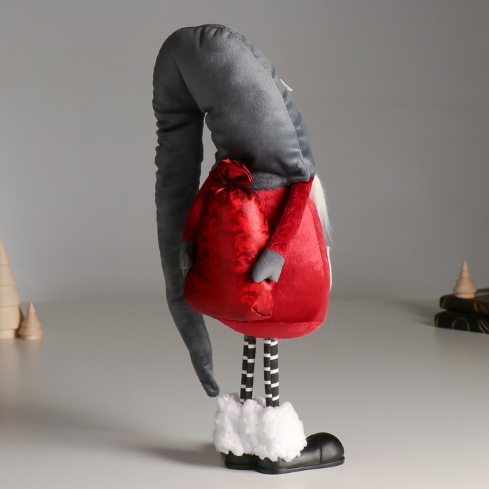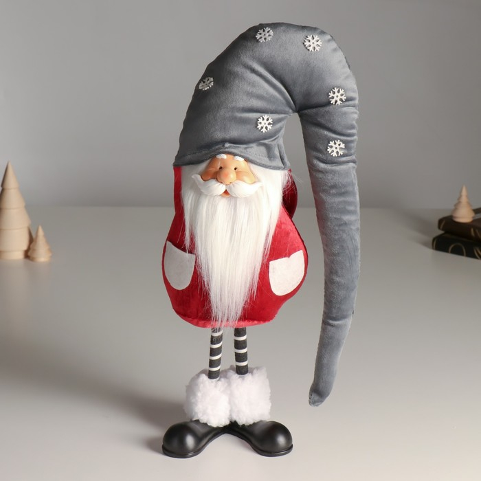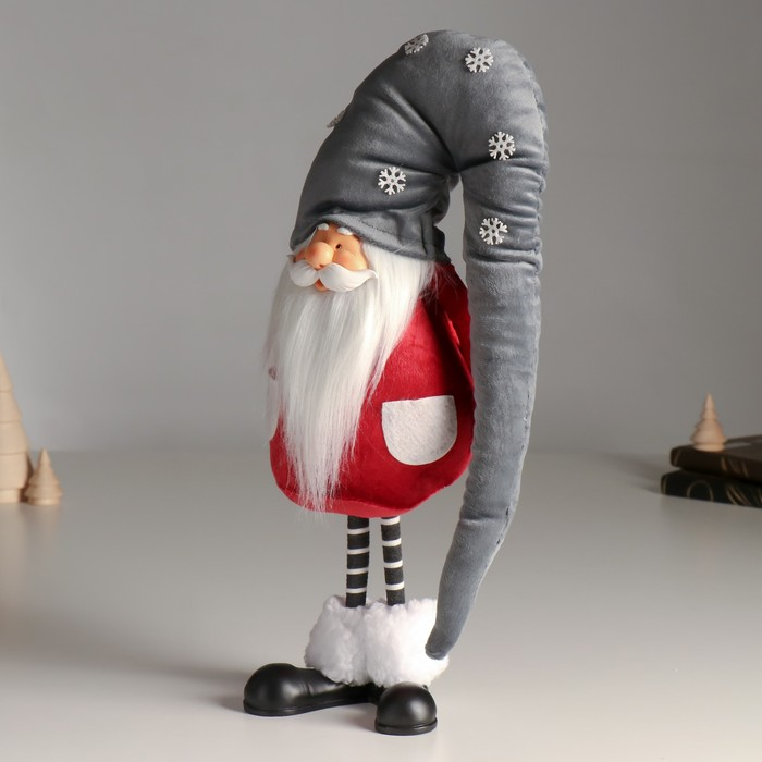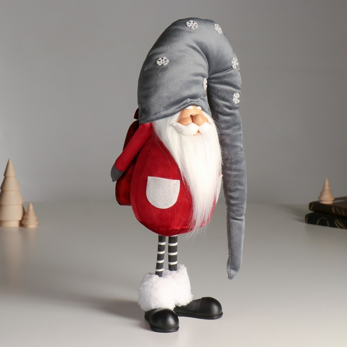 Кукла интерьерная "Дед Мороз в бордовом кафтане, в сером колпаке со снежинками" 42х13х18 см 626011