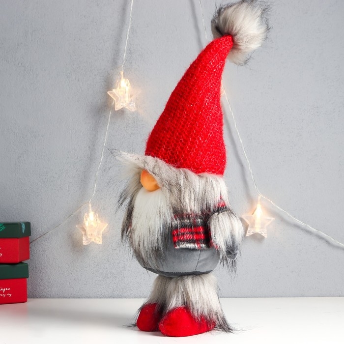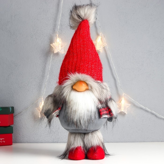 Кукла интерьерная "Дед Мороз в красном колпаке с меховой бомбошкой" 45х18х11 см