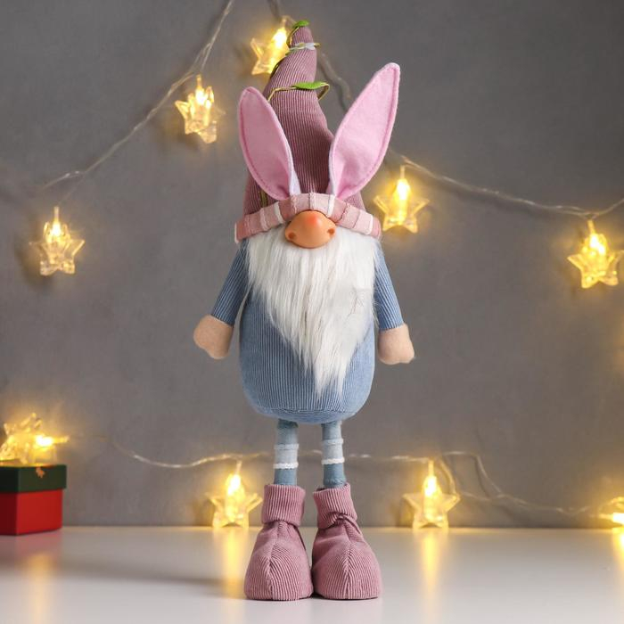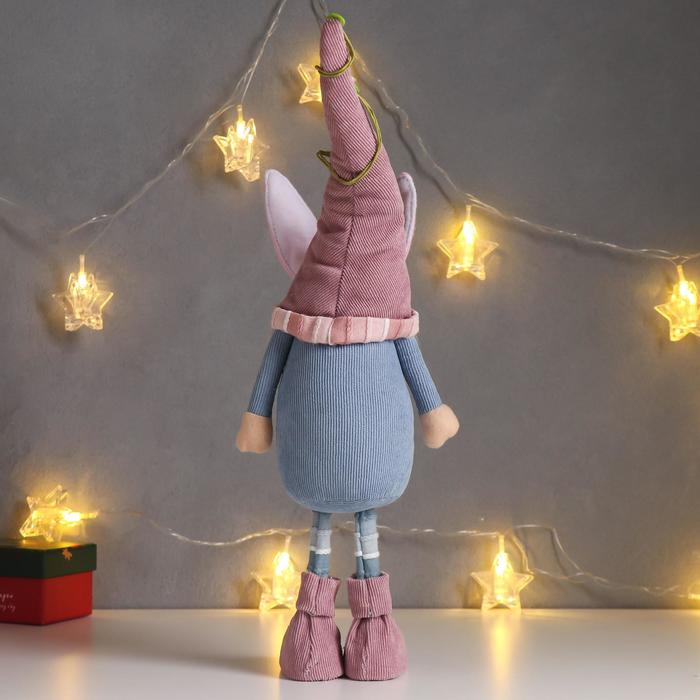 Кукла интерьерная "Дед Мороз в розово-голубом наряде, в колпаке с ушками" 48х10х13 см
