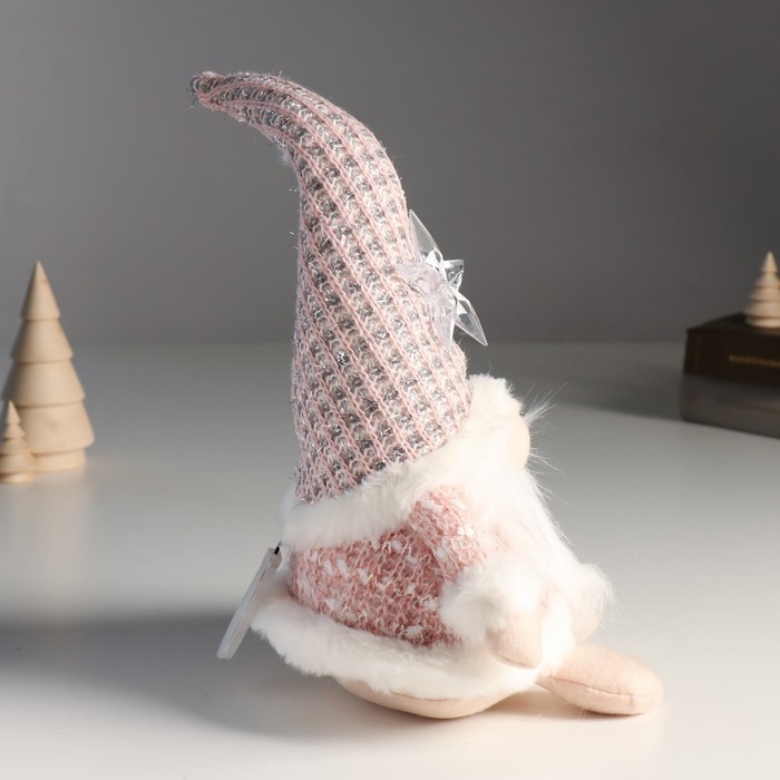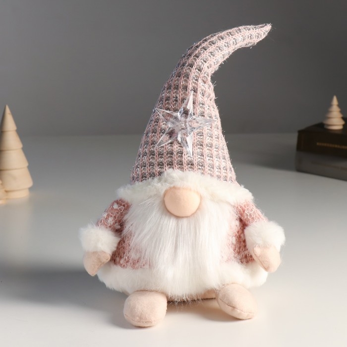 Кукла интерьерная "Дед Мороз в розовом кафтане со звездой на колпаке" 20х13х34 см