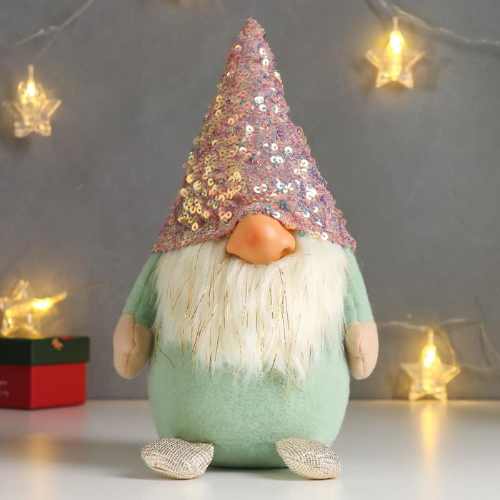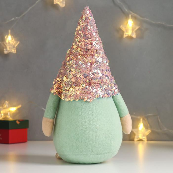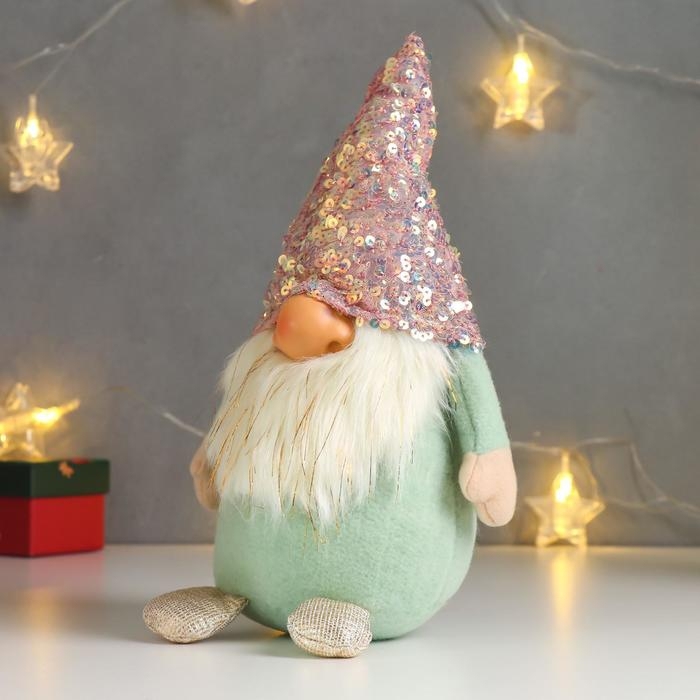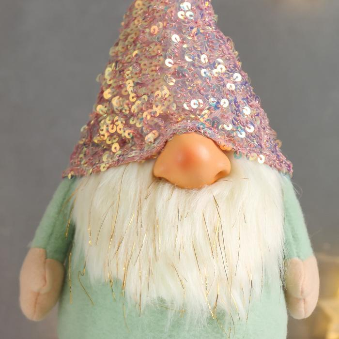 Кукла интерьерная "Дед Мороз в розовом колпаке с пайетками" 33х14х17 см