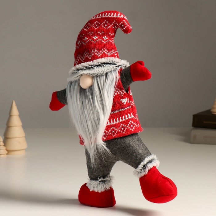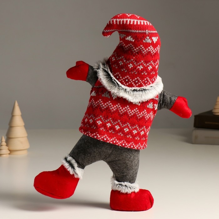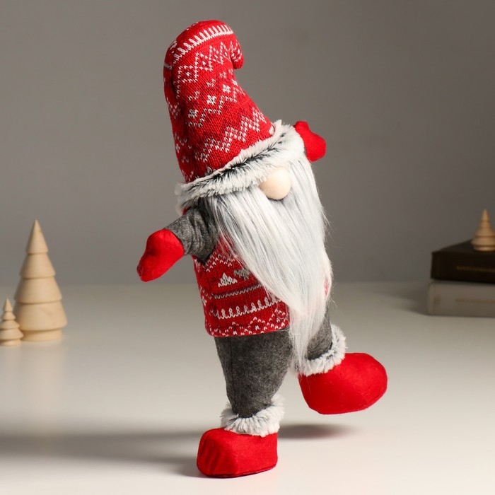 Кукла интерьерная "Дед Мороз в вязаном колпаке с узорами - акробат" 7х24х38 см