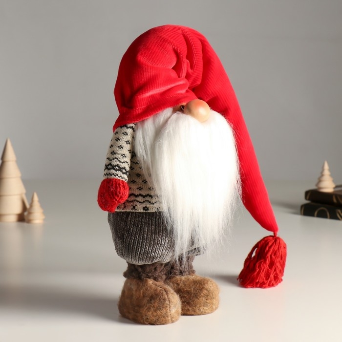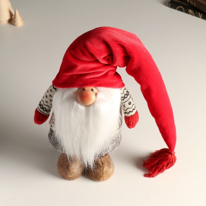Кукла интерьерная "Дедушка Мороз в длинном колпаке с кисточкой" 24,5 см