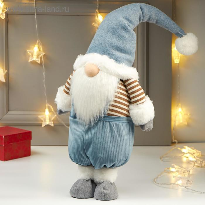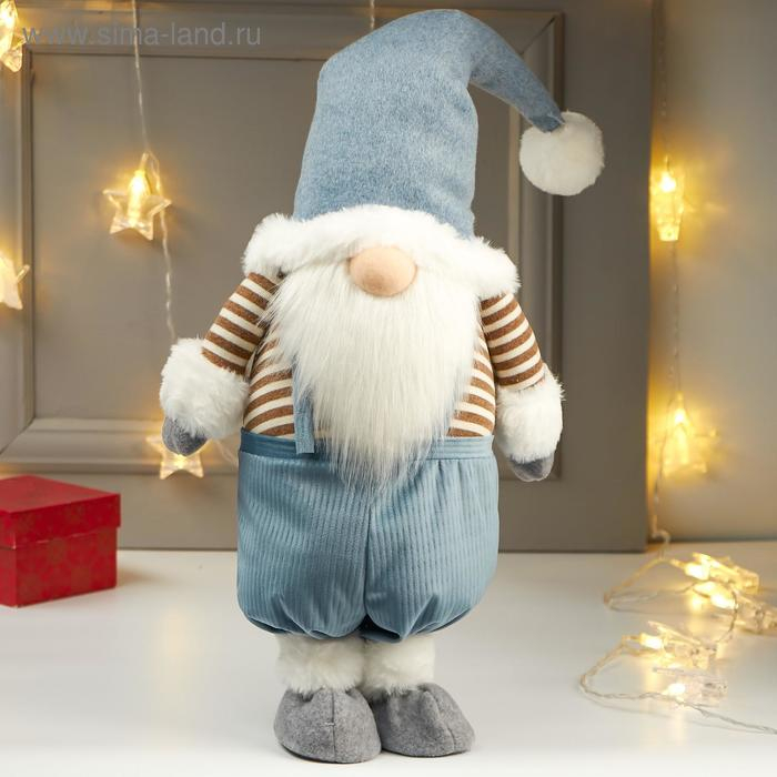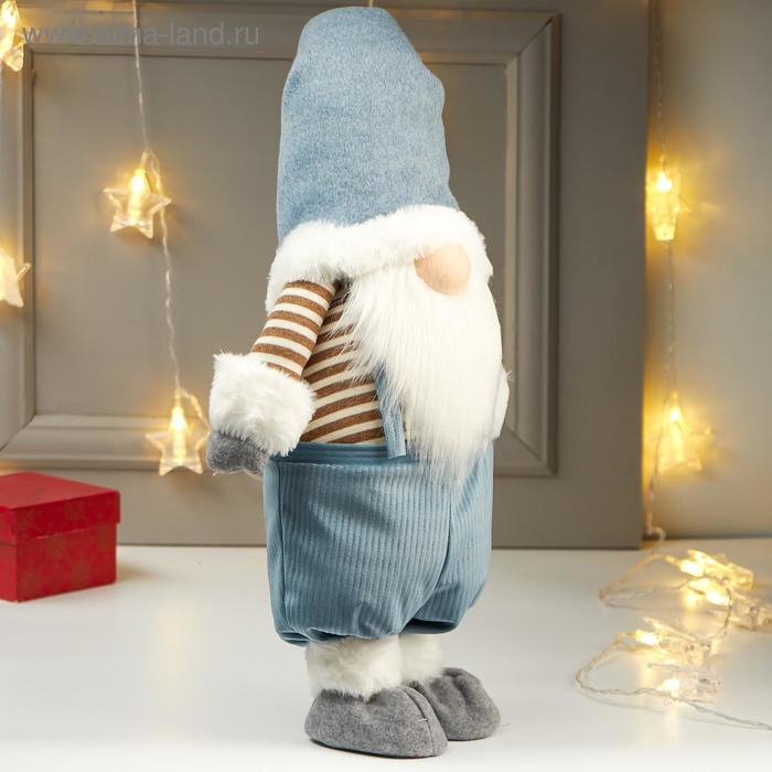 Кукла интерьерная "Дедушка в голубом колпаке и полосатой кофте" 66х15х25 см