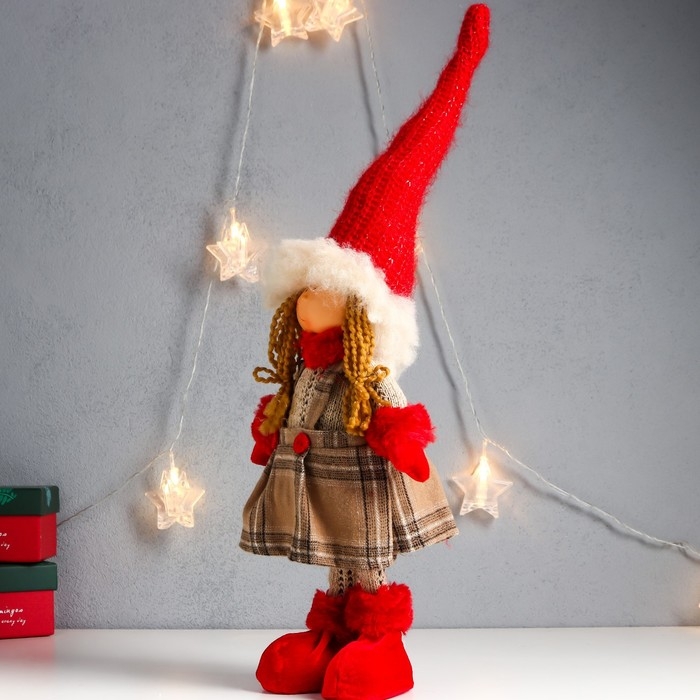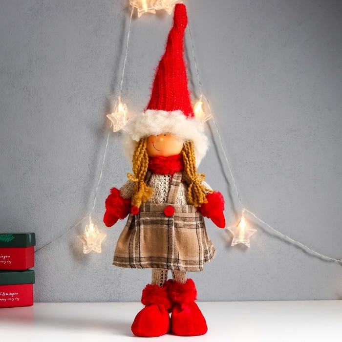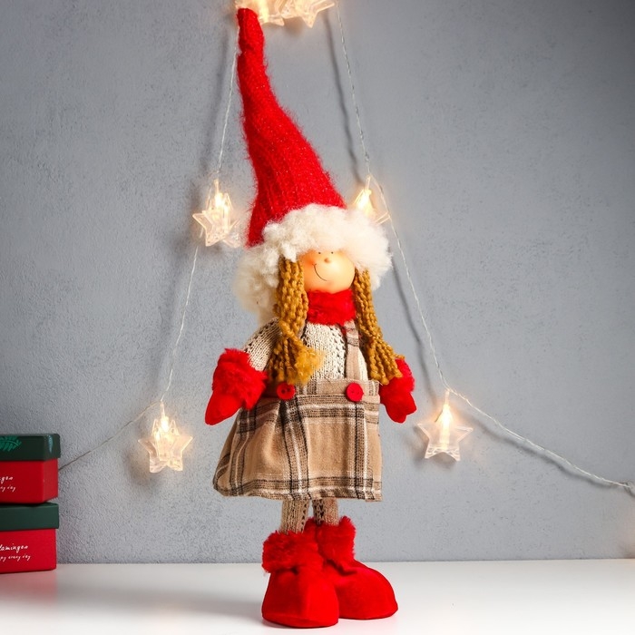 Кукла интерьерная "Девочка в клетчатом сарафане с пуговками" 52х15х10 см