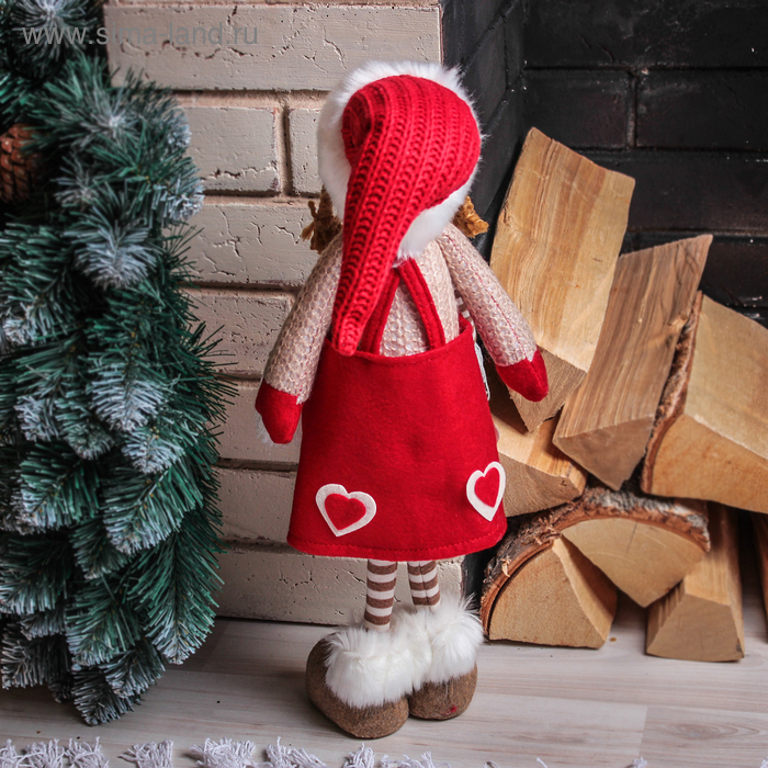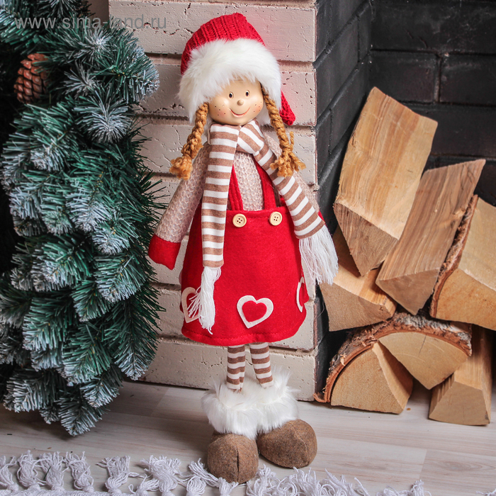 Кукла интерьерная "Девочка в красной юбочке с сердечками" 56 см