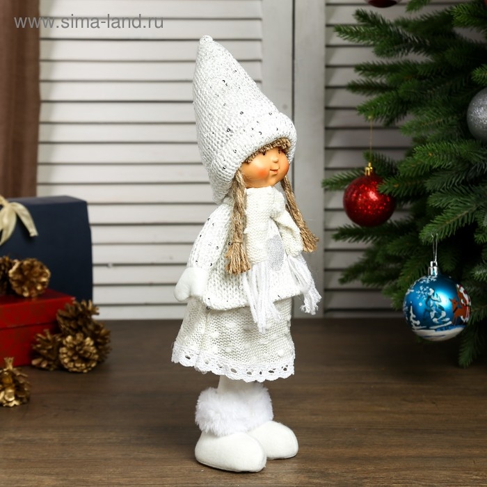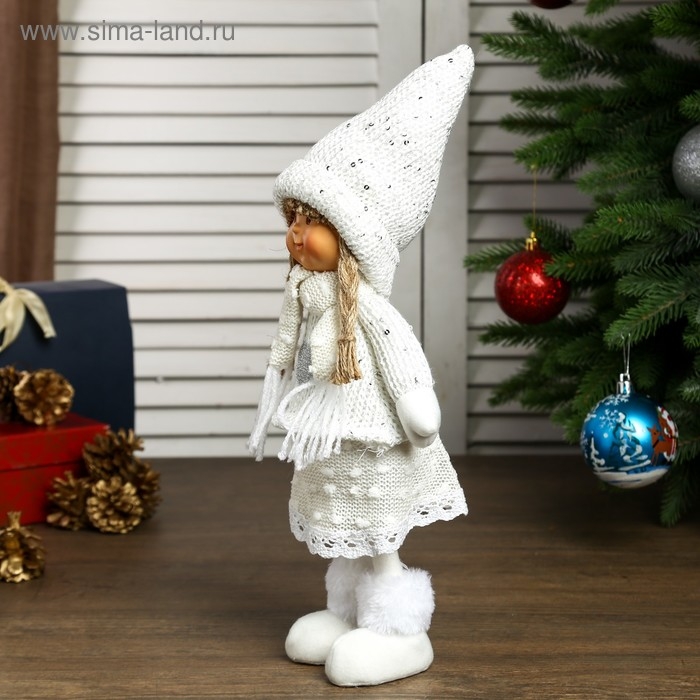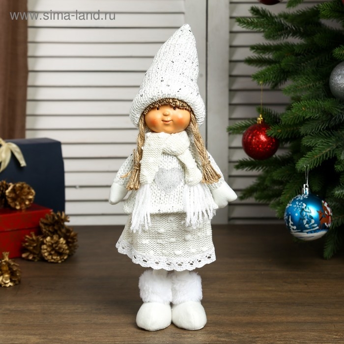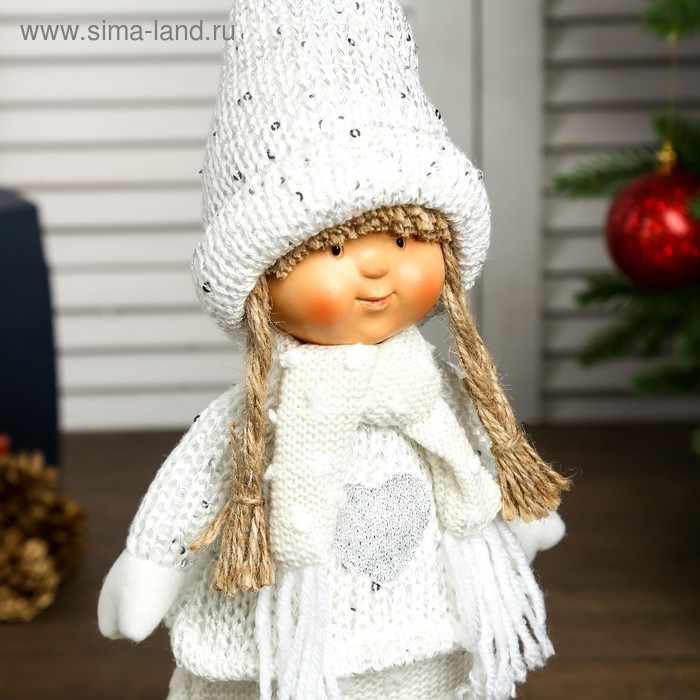 Кукла интерьерная "Девочка Валя в бежевом свитере и колпаке" 38х10х14 см