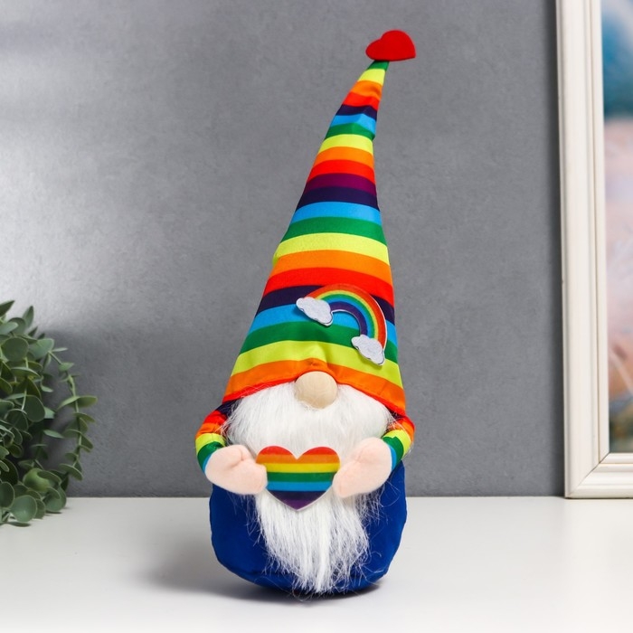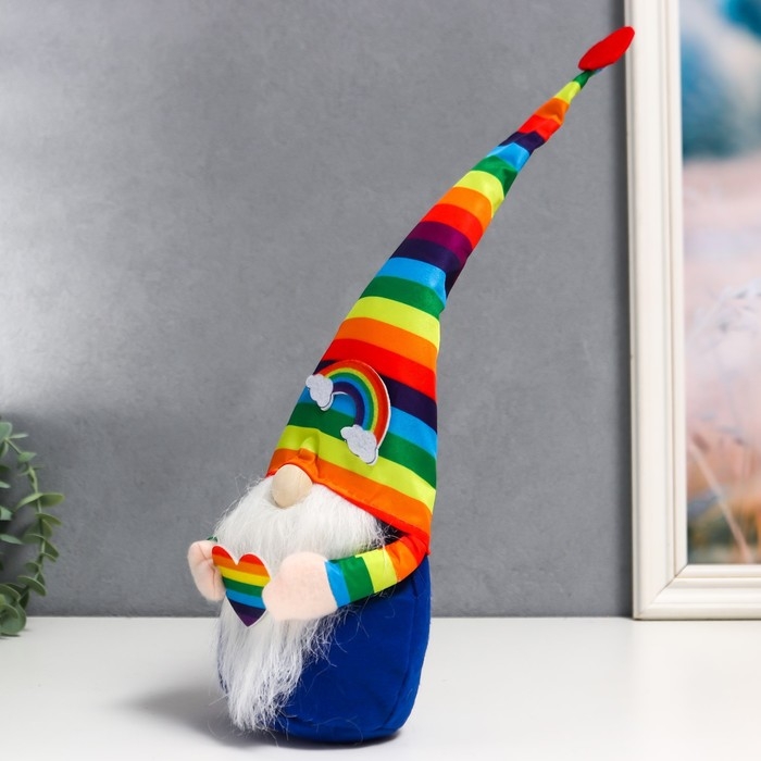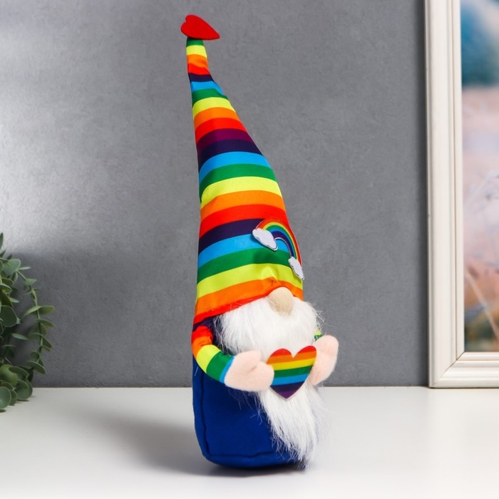 Кукла интерьерная "Гном с сердцем-радугой в руках" 38х9х8 см
