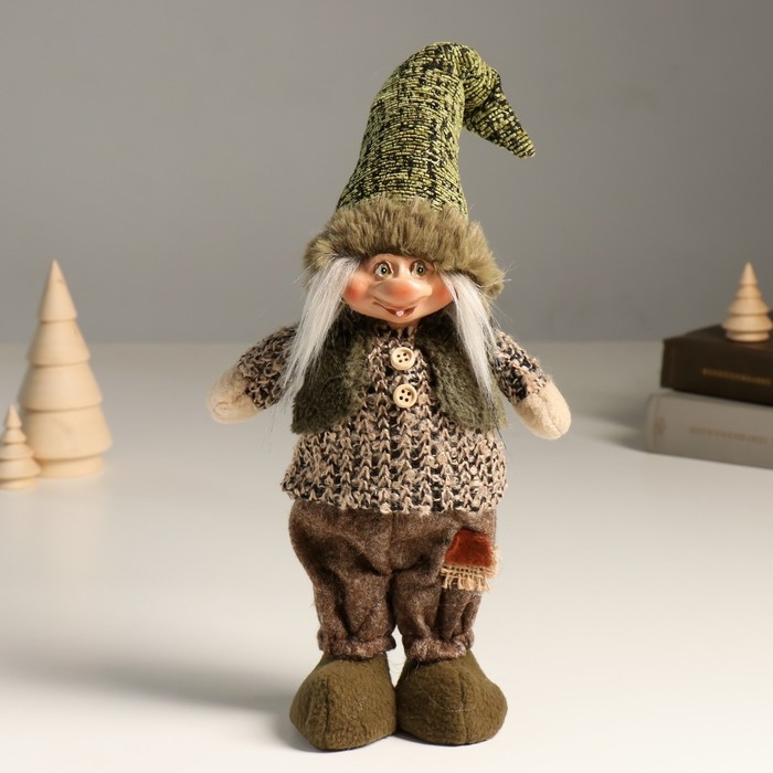 Кукла интерьерная "Гномик в зелёном наряде в колпаке" 32 см
