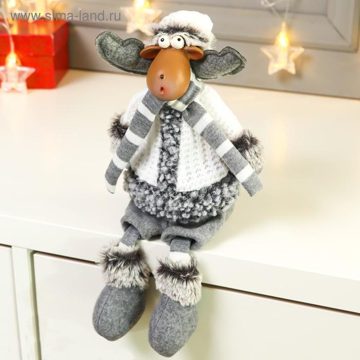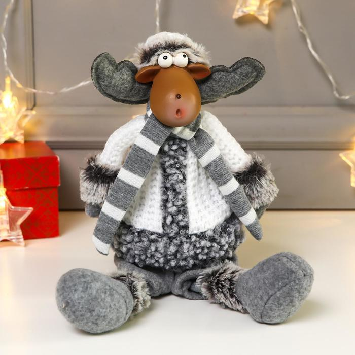 Кукла интерьерная "Лосик в белой шубке и колпаке" 34 см