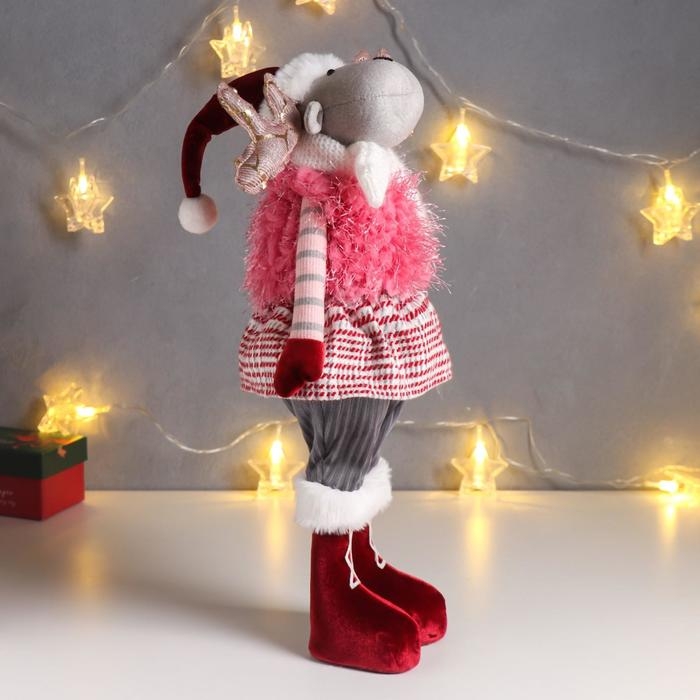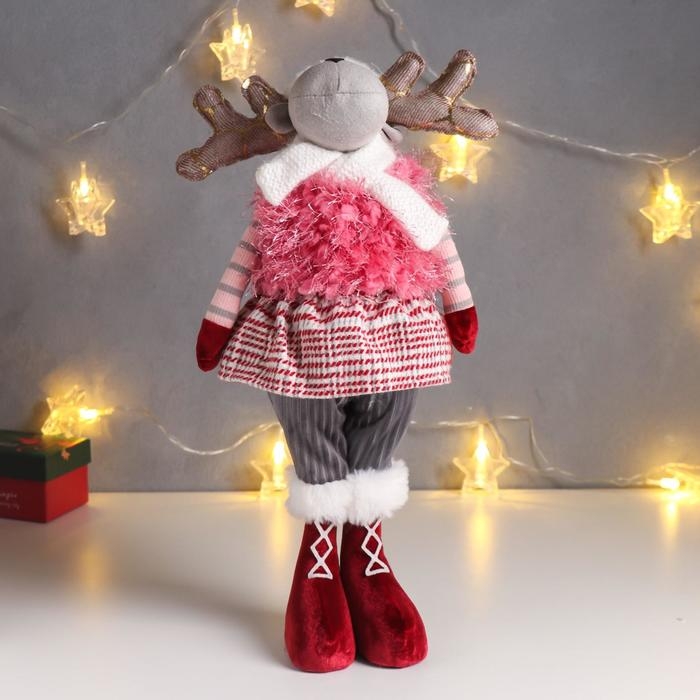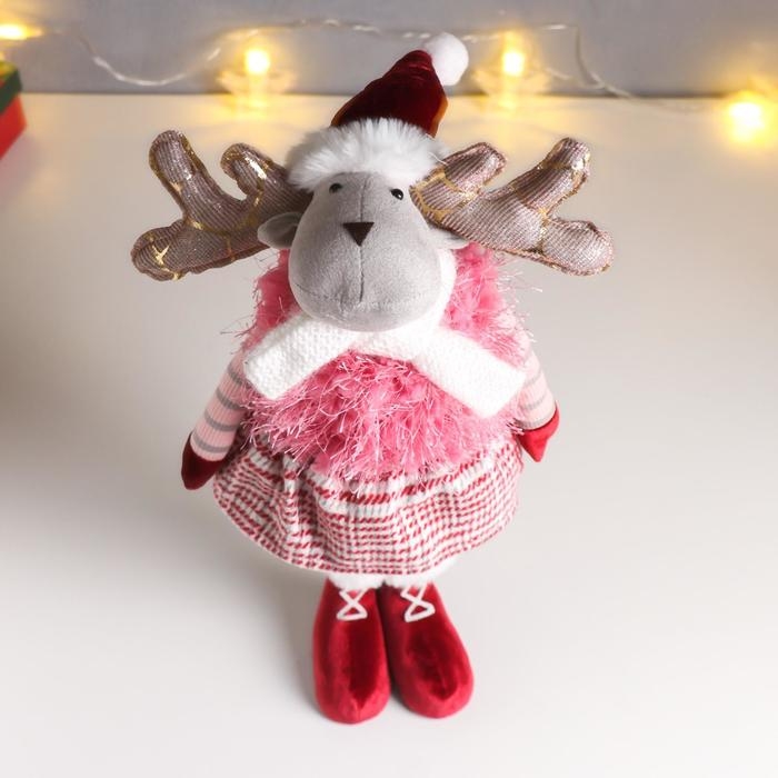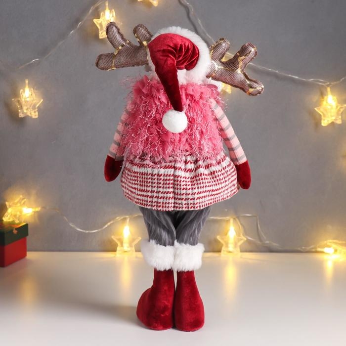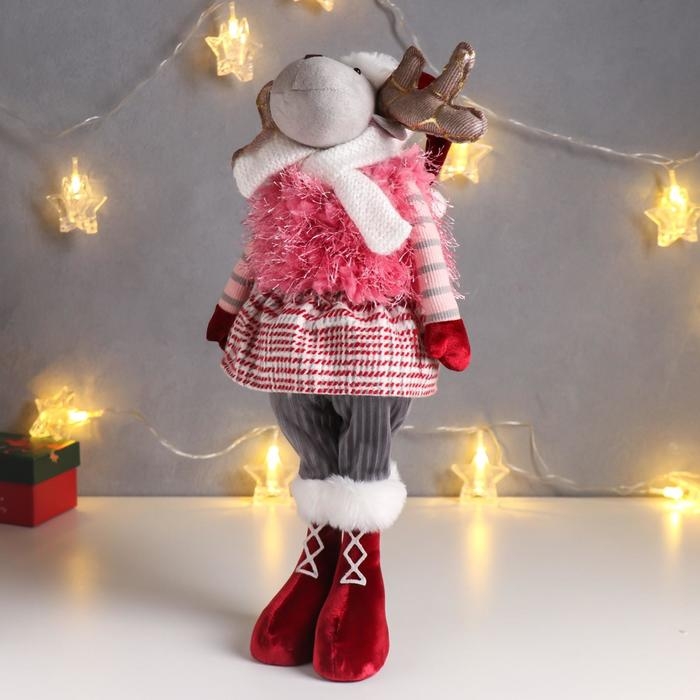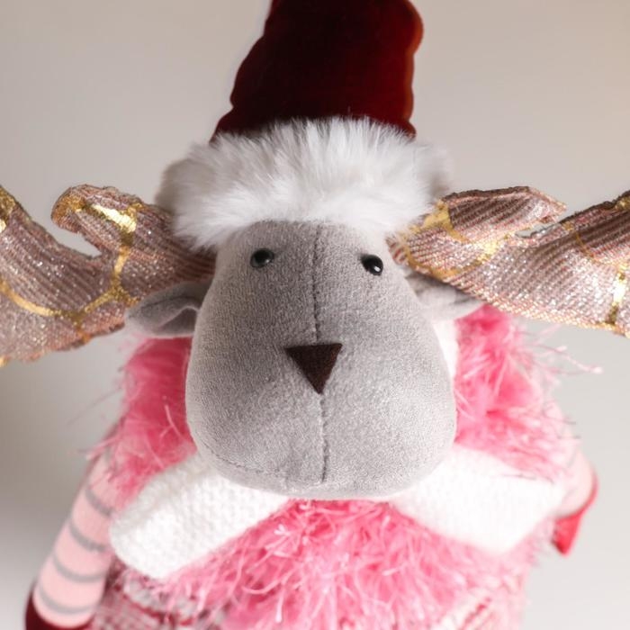 Кукла интерьерная "Лосик в юбочке в клетку, в розовой жилетке-травке" 53х13х18 см
