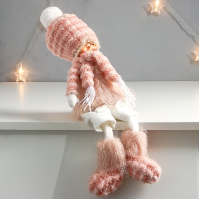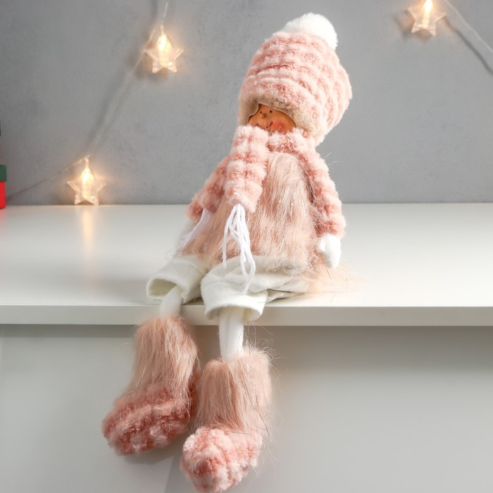 Кукла интерьерная "Мальчишка-кудряш в розовом меховом костюме" длинные ножки 51х10,5х13,5 см 75753