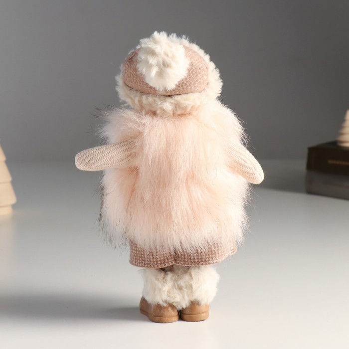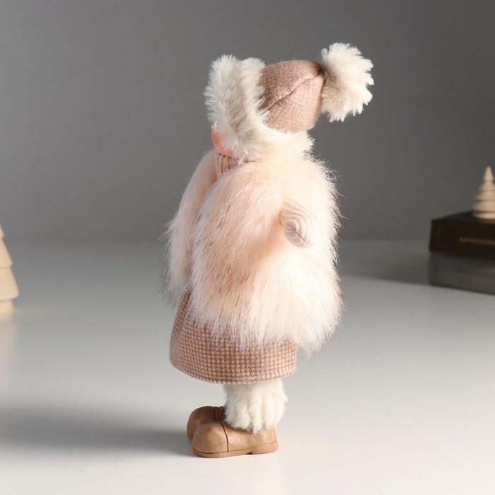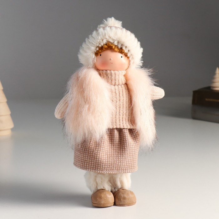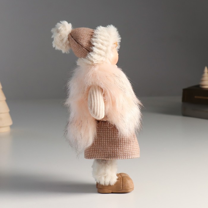 Кукла интерьерная "Малышка в меховом жилете и в шапке с помпоном" 27х9х12 см