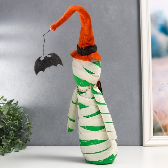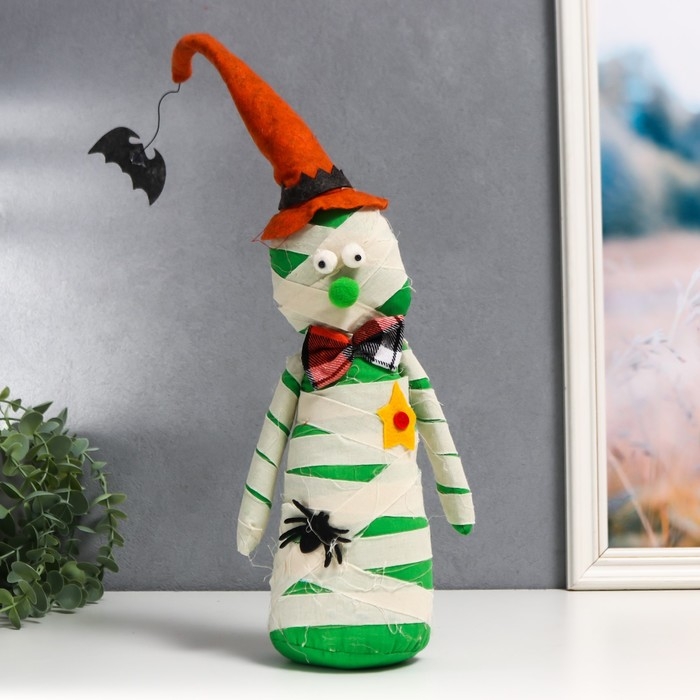 Кукла интерьерная "Мумия в колпаке с летучей мышью" 40х10 см