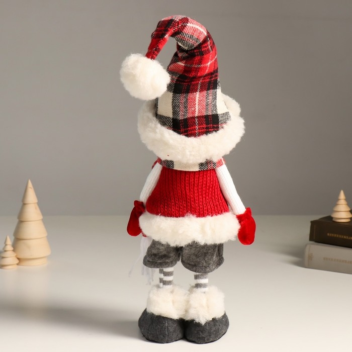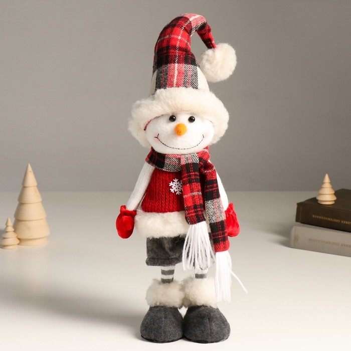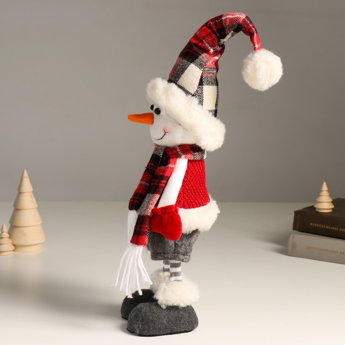 Кукла интерьерная "Снеговик в жилете со снежинкой и клетчатом колпаке" 44 см