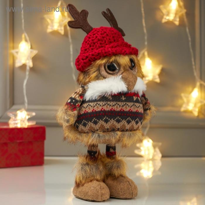 Кукла интерьерная "Совушка в шапочке с рожками и в платье" 26х10х12 см
