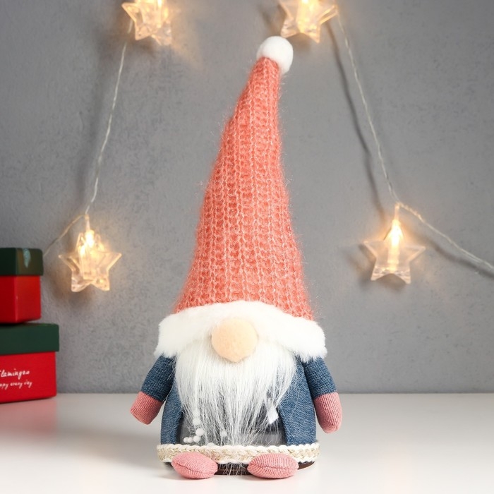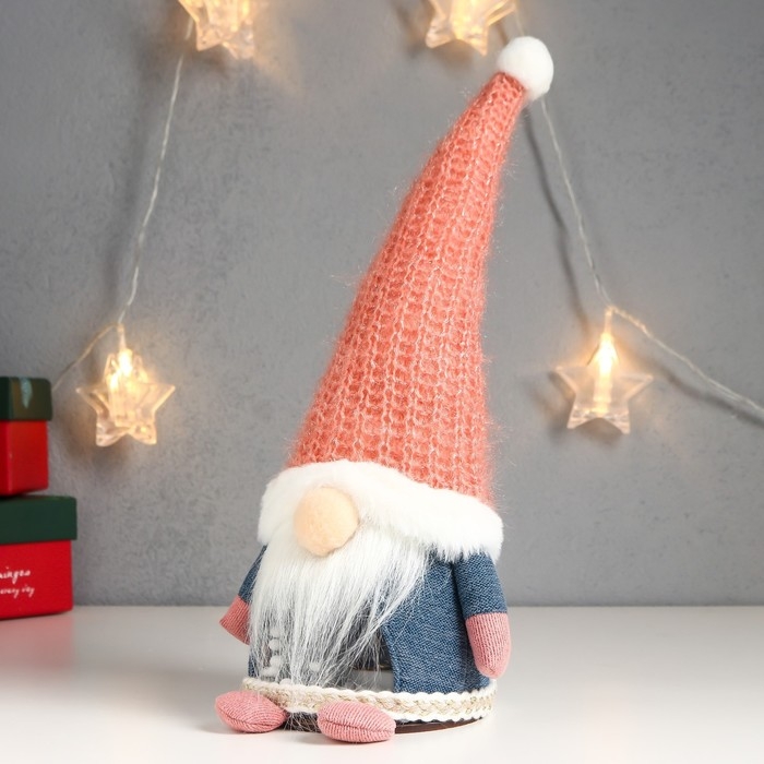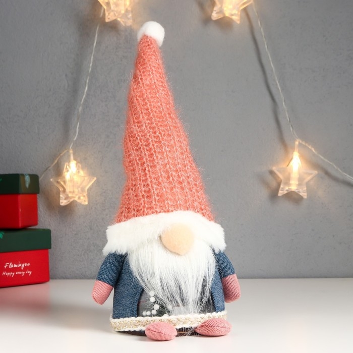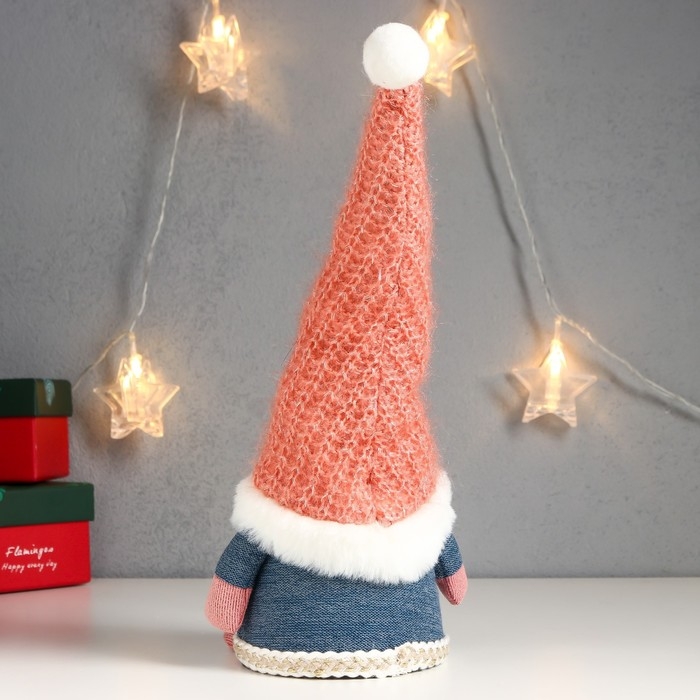 Кукла интерьерная свет "Дед Мороз в розовом вязаном колпаке" 32х12х11 см