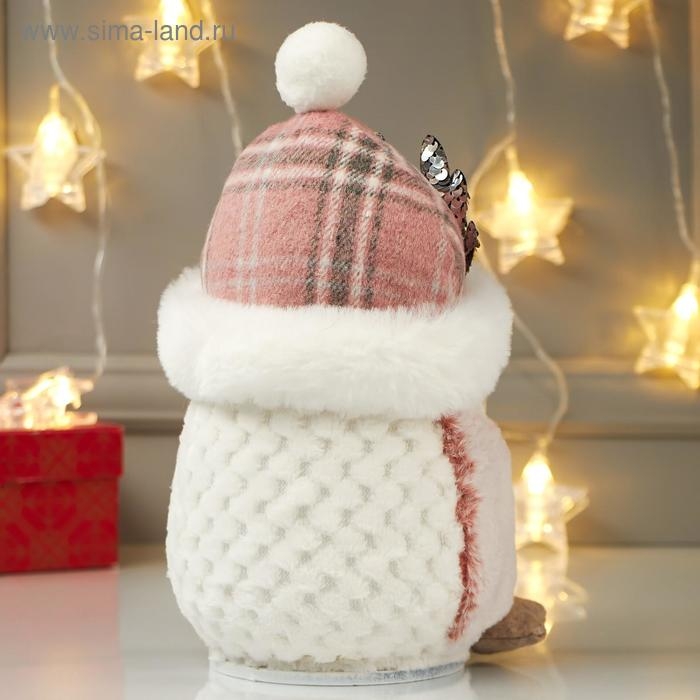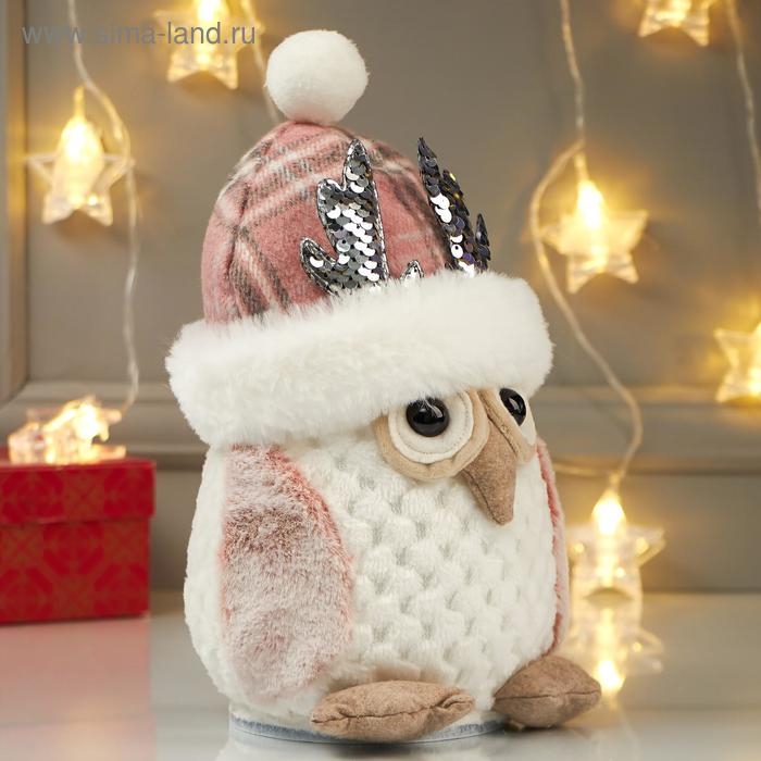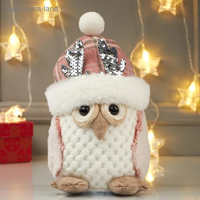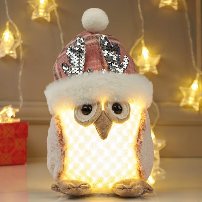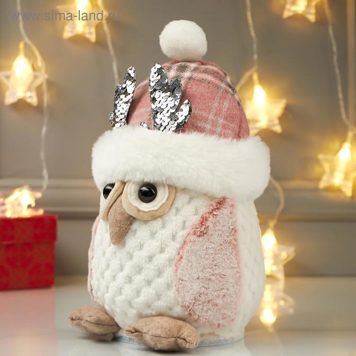 Кукла интерьерная свет "Совушка в розовой шапке с оленьими рожками" 25х15х15 см