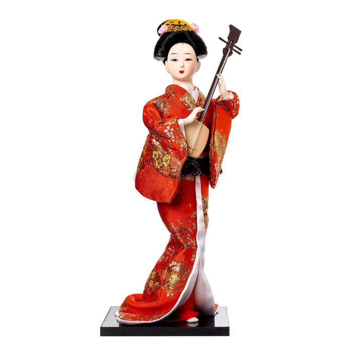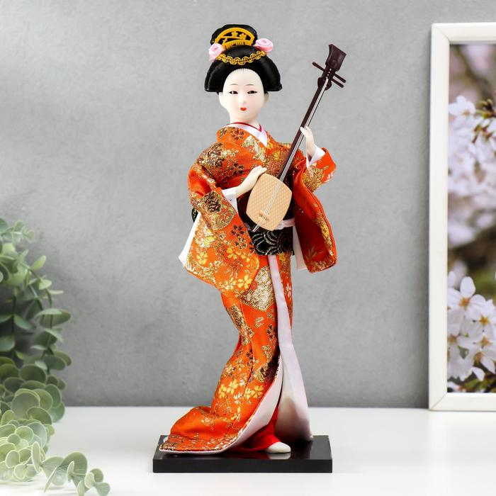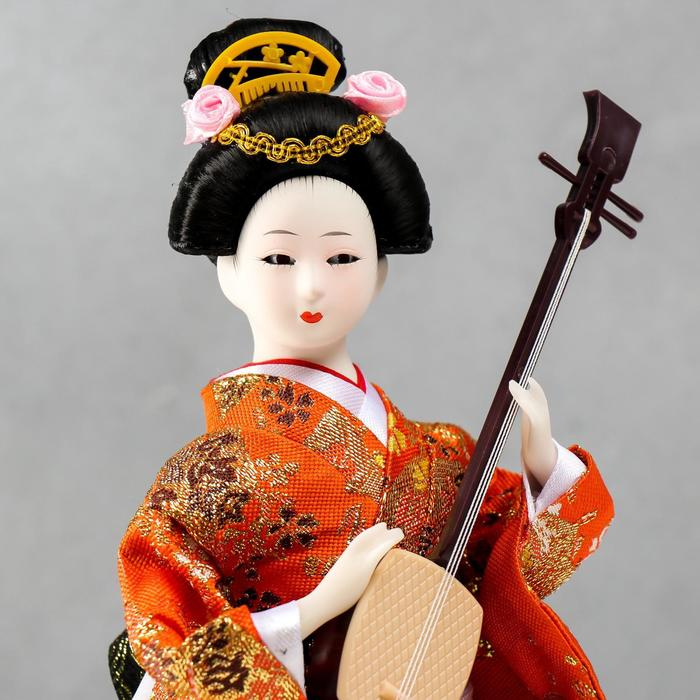 Кукла коллекционная "Гейша с музыкальным инструментом" 32х12,5х12,5 см