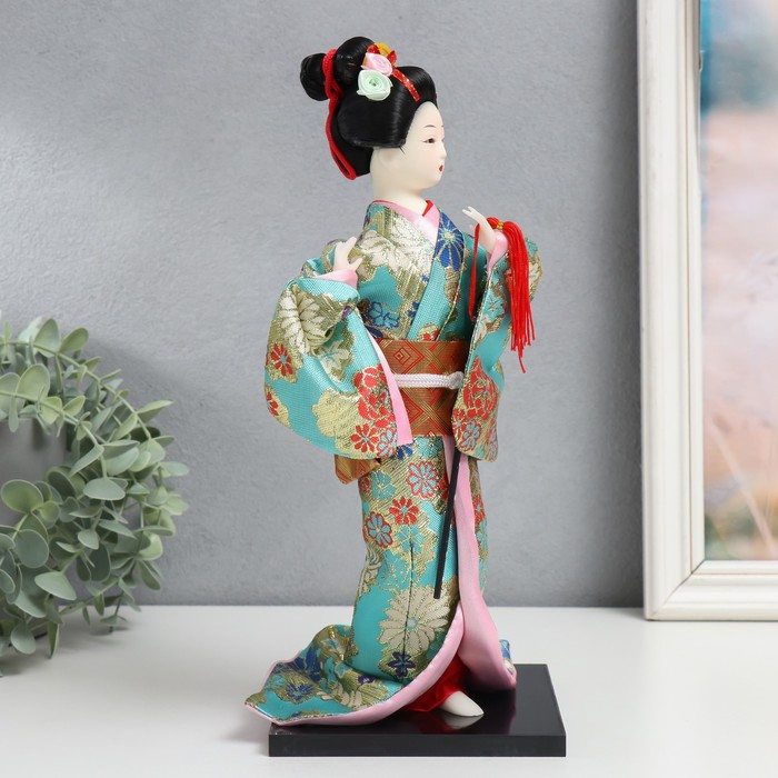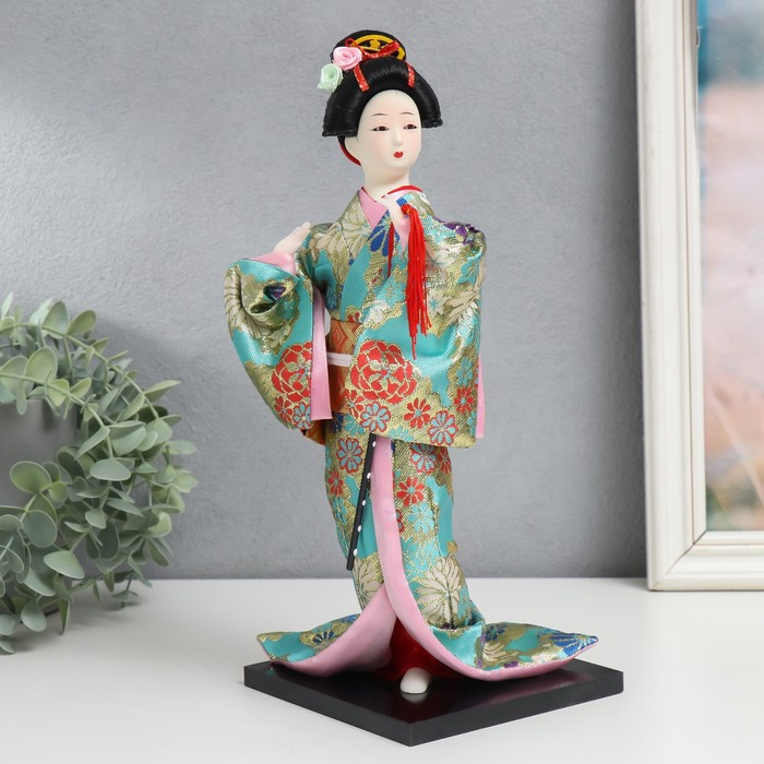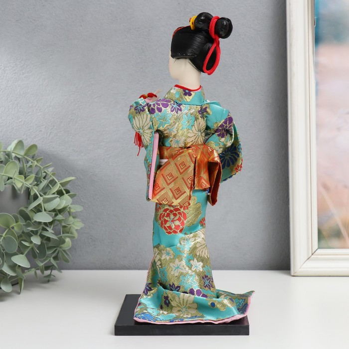 Кукла коллекционная "Гейша в бирюзовом кимоно с цветами" 32х13х13 см