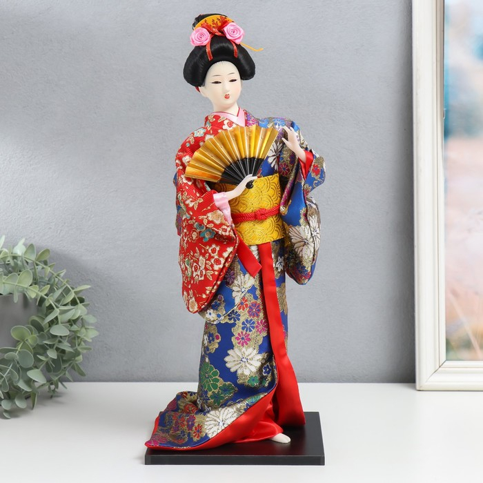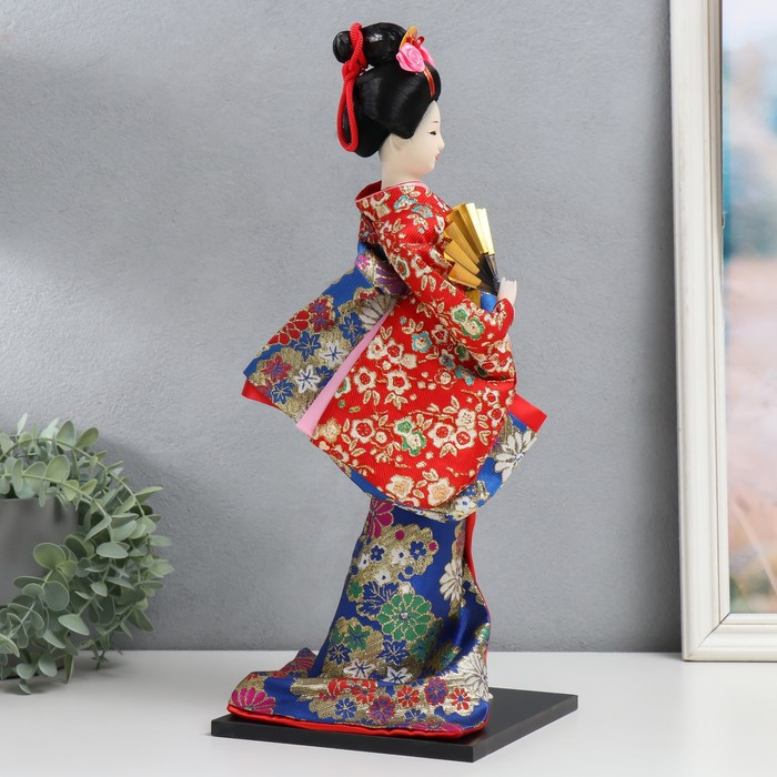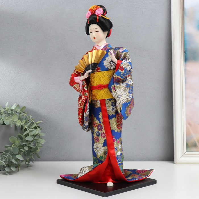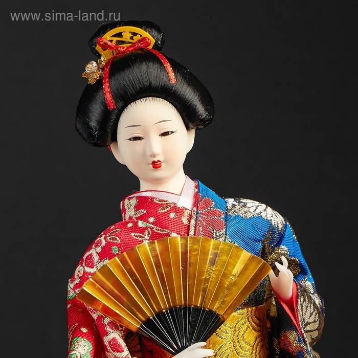 Кукла коллекционная "Гейша в шелковом кимоно с веером" 40 см