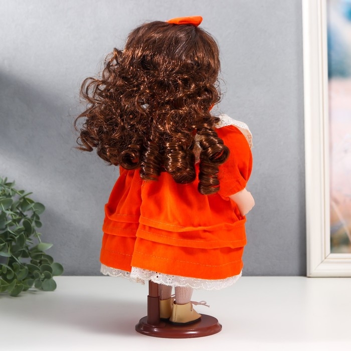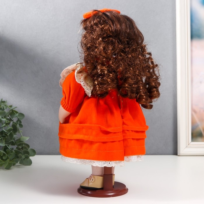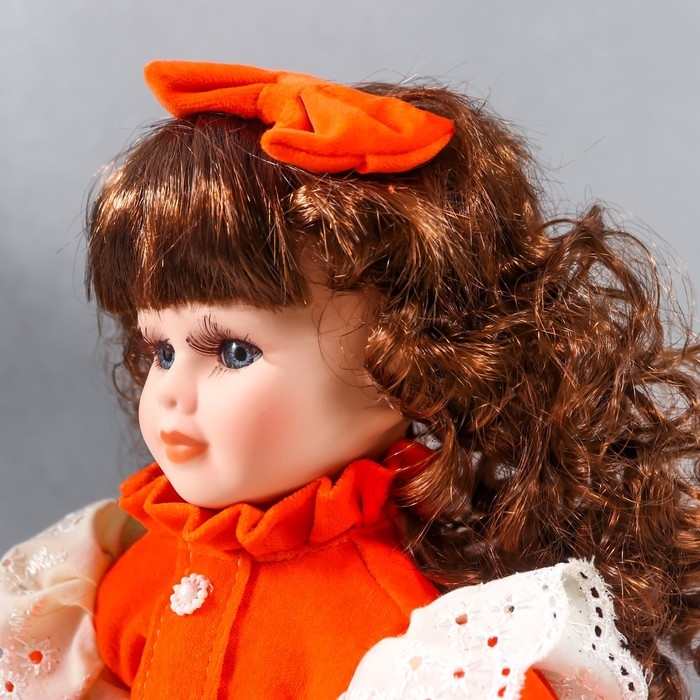Кукла коллекционная керамика "Агата в ярко-оранжевом платье и банте, с рюшами" 30 см