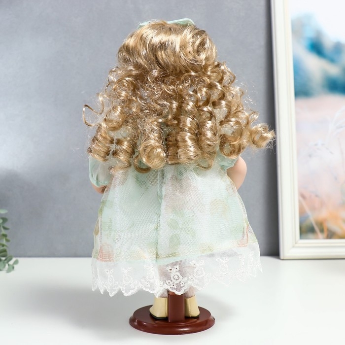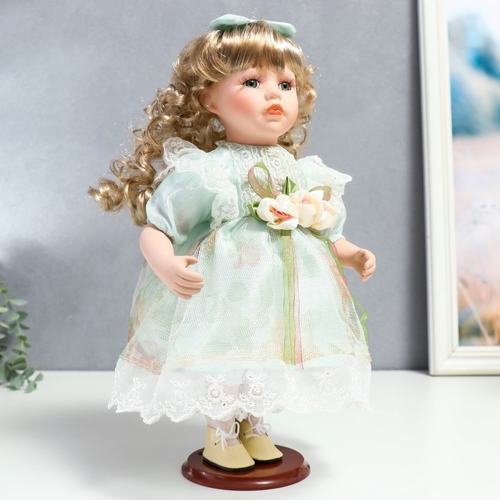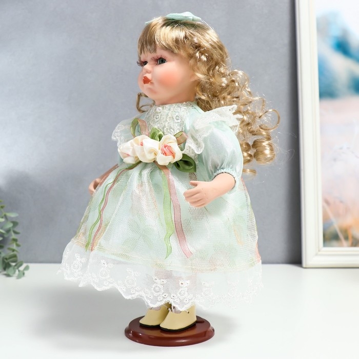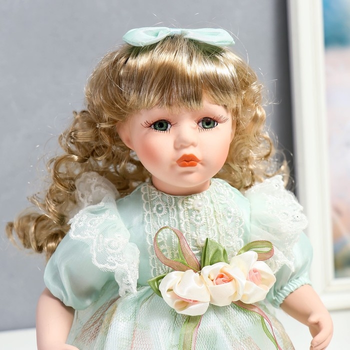 Кукла коллекционная керамика "Джудит в нежно-мятном платье с цветочками" 30 см