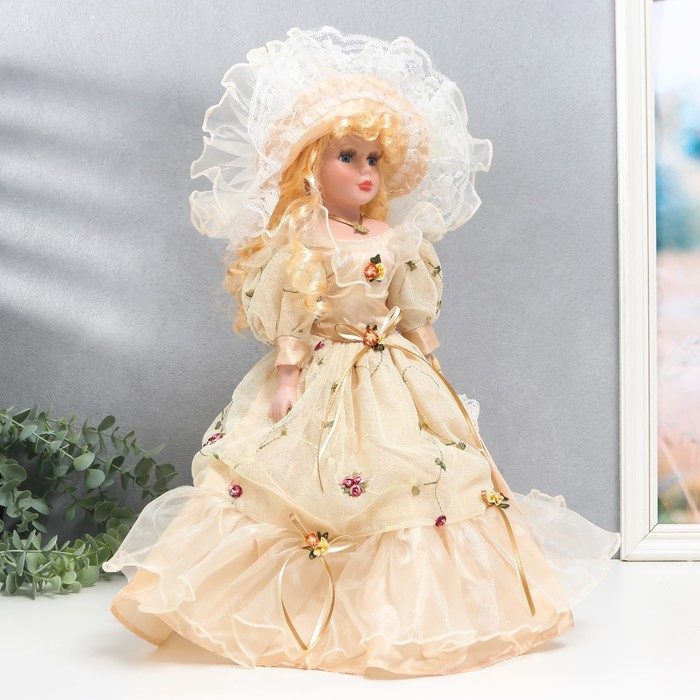 Кукла коллекционная керамика "Евгения в сливочном платье" 40 см