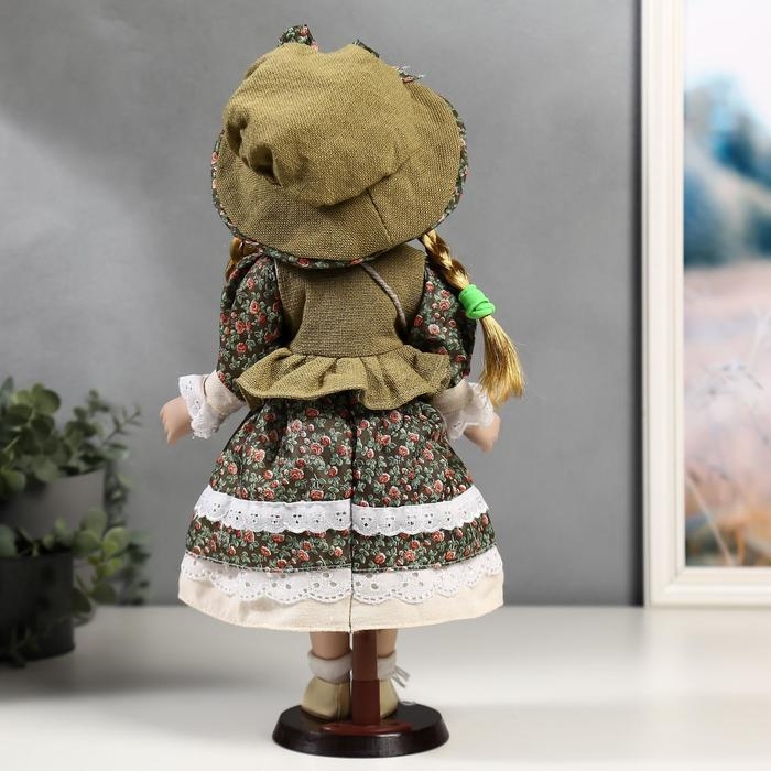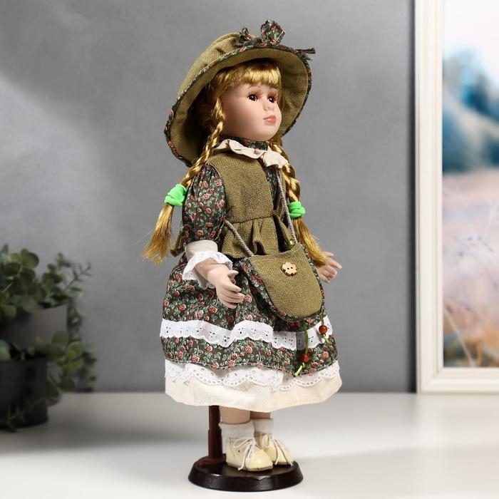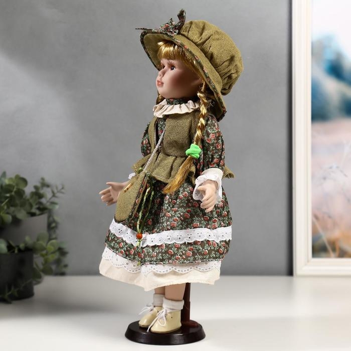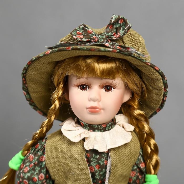 Кукла коллекционная керамика "Маша в зелёном платье в цветочек" 40 см