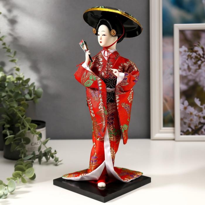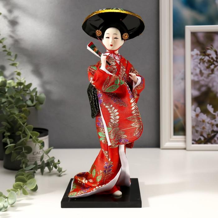 Кукла коллекционная "Китаянка с веером в шляпе" 30х12,5х12,5 см