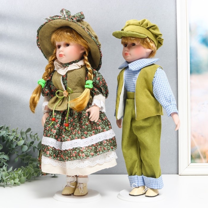 Кукла коллекционная парочка "Вика и Антон, розочки на зелёном" набор 2 шт 40 см