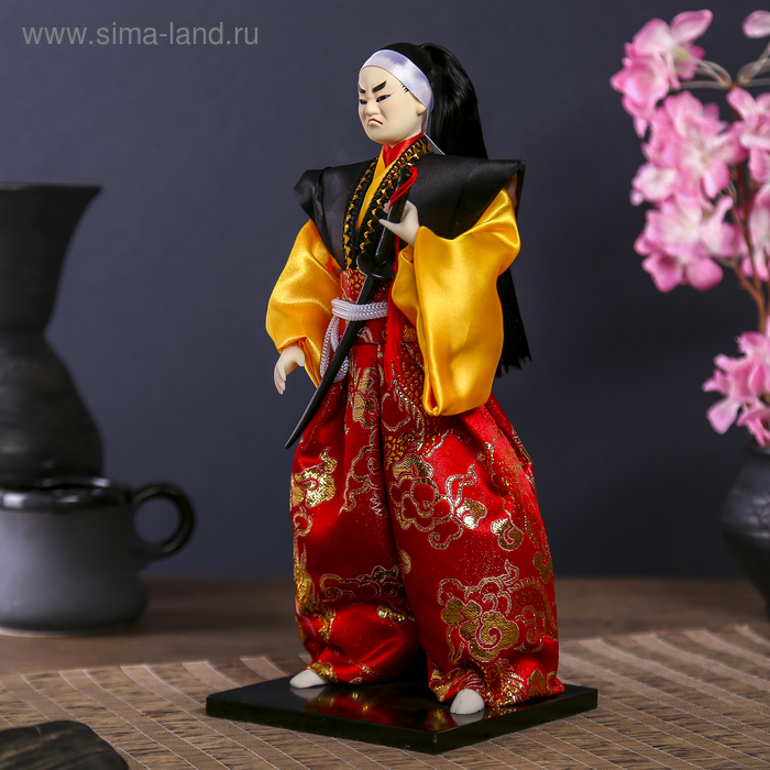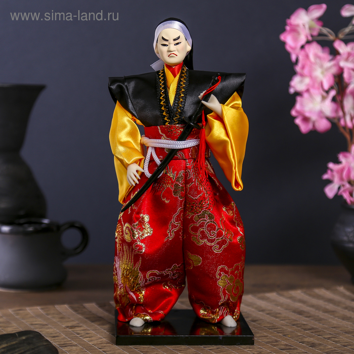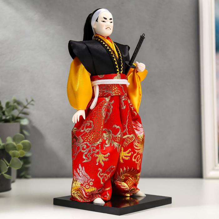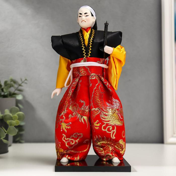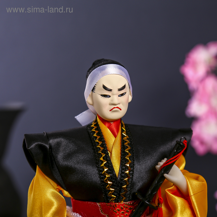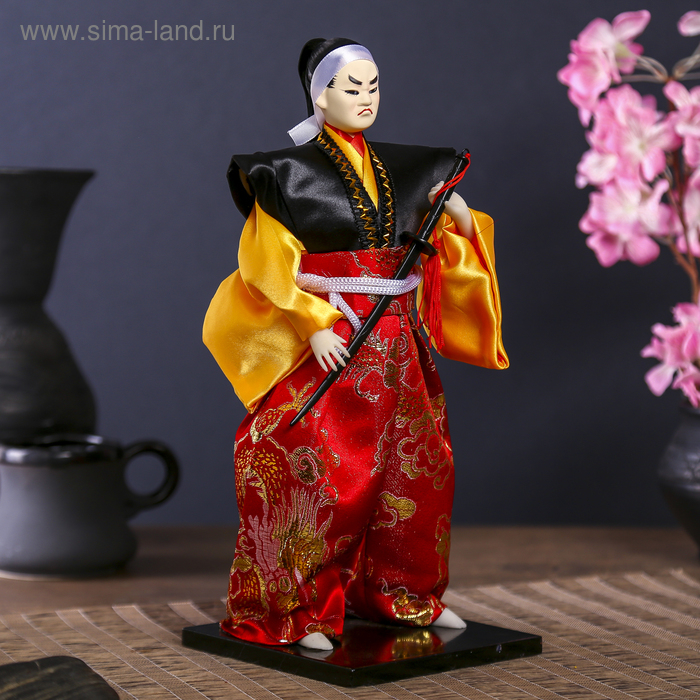 Кукла коллекционная "Воин в ярком кимоно с саблей" 30х12,5х12,5 см