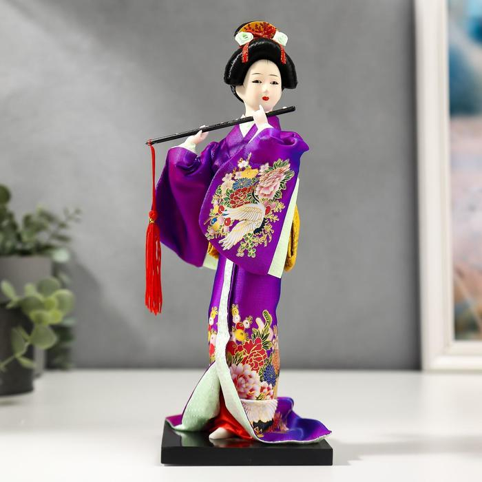 Кукла коллекционная "Японка в фиолетовом кимоно с флейтой" 25х9,5х9,5 см
