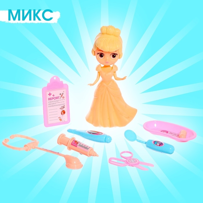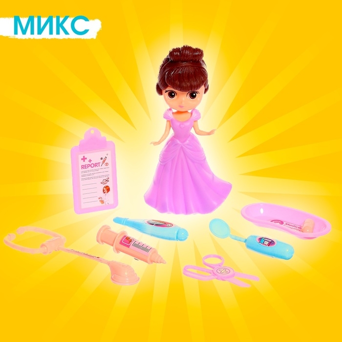 Ваша принцесса интересуется разными профессиями и ей нравится играть в куклы? Тогда она будет в восторге от этого набора с принцессой и медицинскими инструментами! Вместе с куколкой «Кэтти» малышка сможет изучить профессию доктора и придумать сюжетно-ролевые игры в новой для себя сфере.