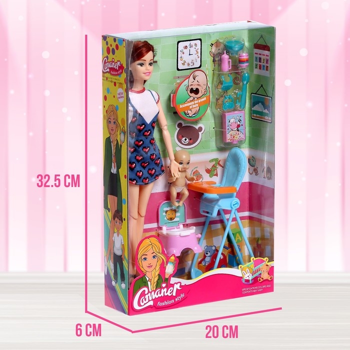 Кукла модель «Молодая мама», с пупсом, с аксессуарами, цвет розовый